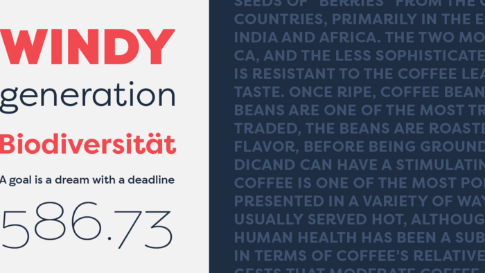 Interval Next is a contemporary sans serif font family that is the successor of the popular Interval Sans Pro. This “superfamily” combines a humanist mind with its contrasted shapes and a modern look with its open counters. The typeface’s OpenType features offer almost unlimited multilingual support as well as small caps, case-sensitive forms, proportional and tabular figures, slashed zero, numerators, superscripts, denominators, scientific inferiors, circled figures, subscript, ordinals, fractions, arrows, and f-ligatures. Also extremely functional for professional editorial design, Interval Next has pro kerning and is ideal for mobile applications, e-books, web sites, headlines, posters, and signage.