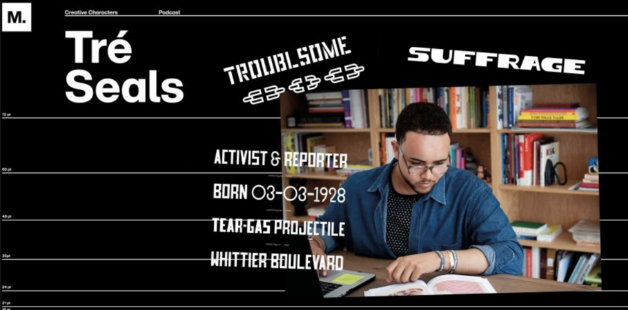 Our guest in episode four was Tré Seals, founder of the type studio Vocal Type. Seals describes Vocal as “a type foundry for creatives of color who feel that they don’t have a say in their industry … for the creative women who feel that they don’t have a say in their industry … for the creative that cares about telling the stories of the people we serve and not the false history of the industry we work in.” All of Vocal’s typefaces are named after prominent advocates of social justice, including Marsha P. Johnson, Bayard Rustin, and Carrie Chapman Catt.
